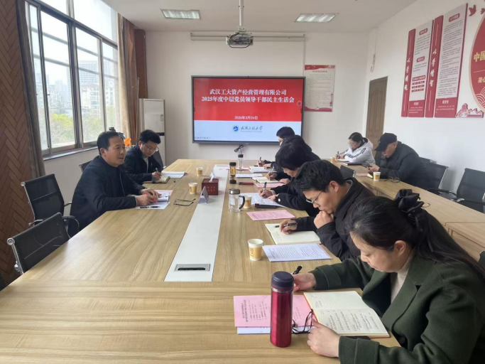 (通讯员李婷婷)根据校党委统一部署,3月26日下午,公司在武昌校区办公楼508会议室召开2025年度中层党员领导干部民主生活会。校第五督导组组长、校党委常委、副校长马小龙率队到会指导。公司直属党支部书记杨茂荣主持会议,全体班子成员参加会议,支部委员会委员列席会议。